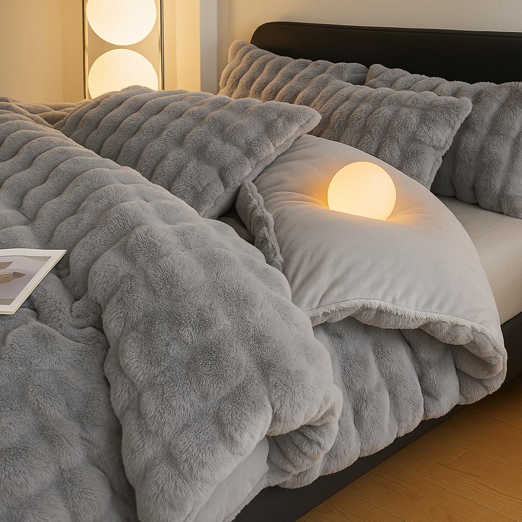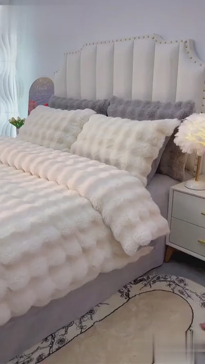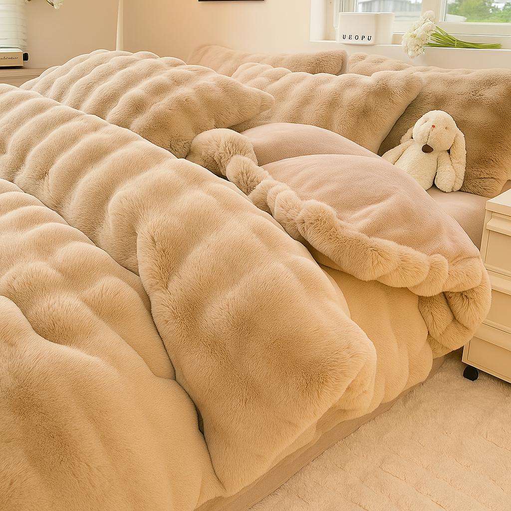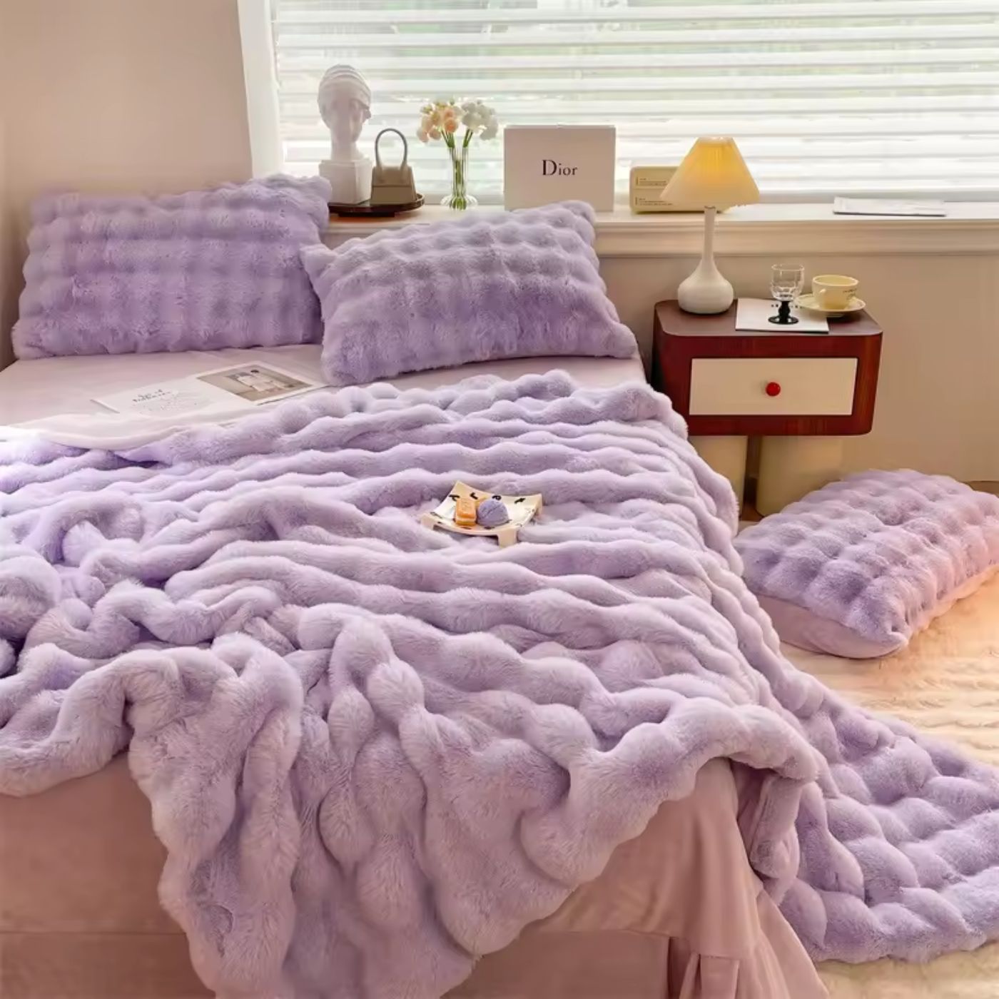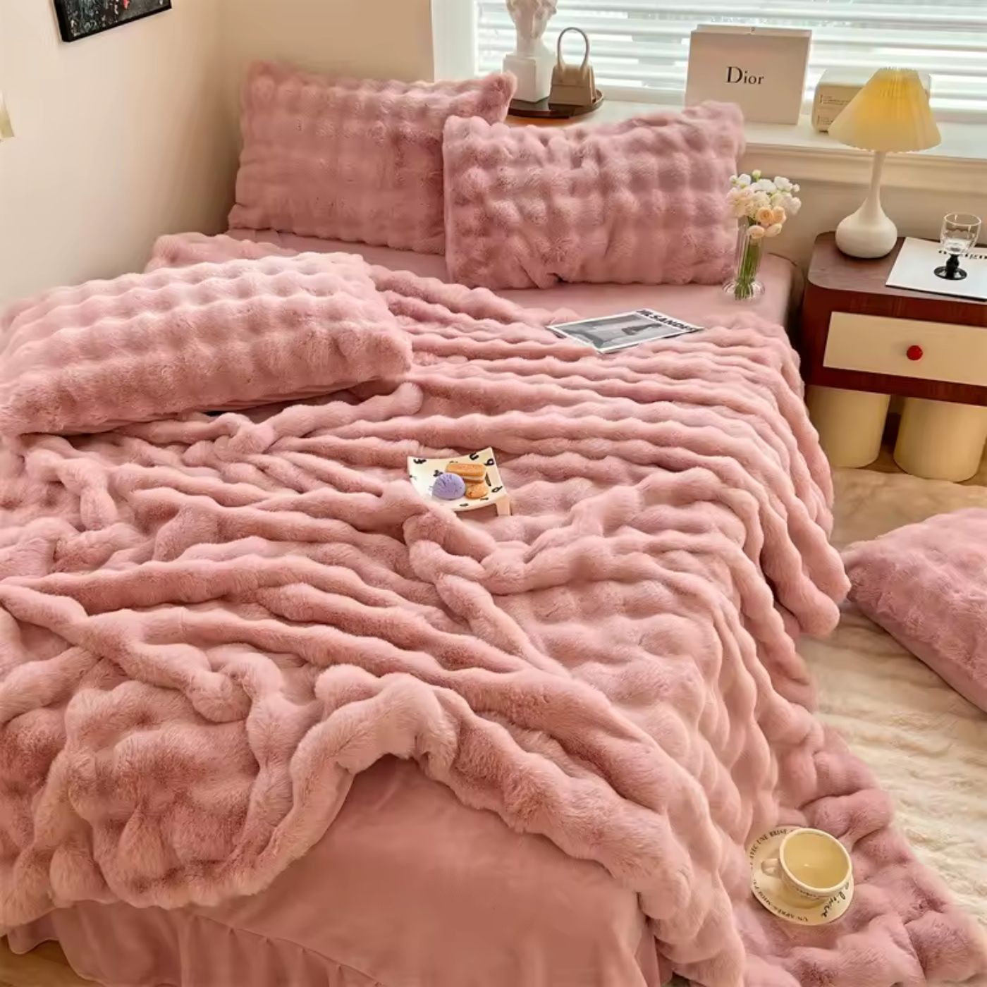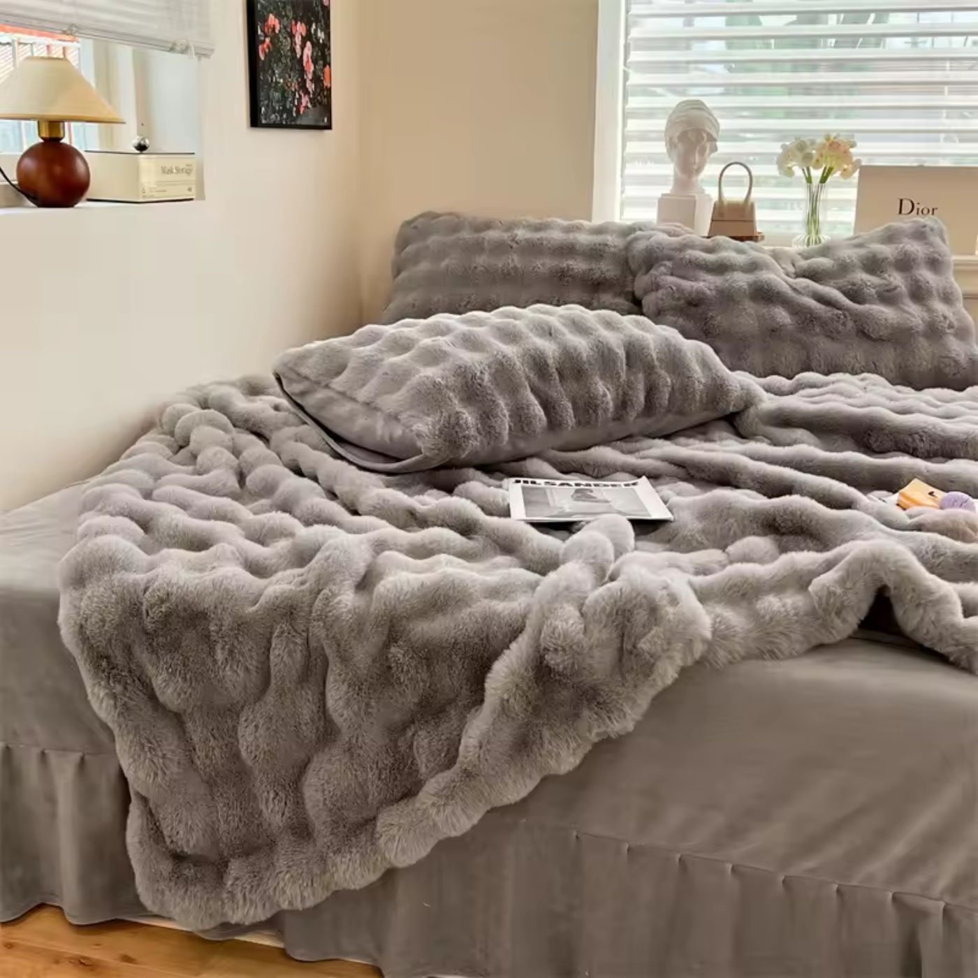 ❄️ Couverture d’hiver en peluche de faux lapin au lait